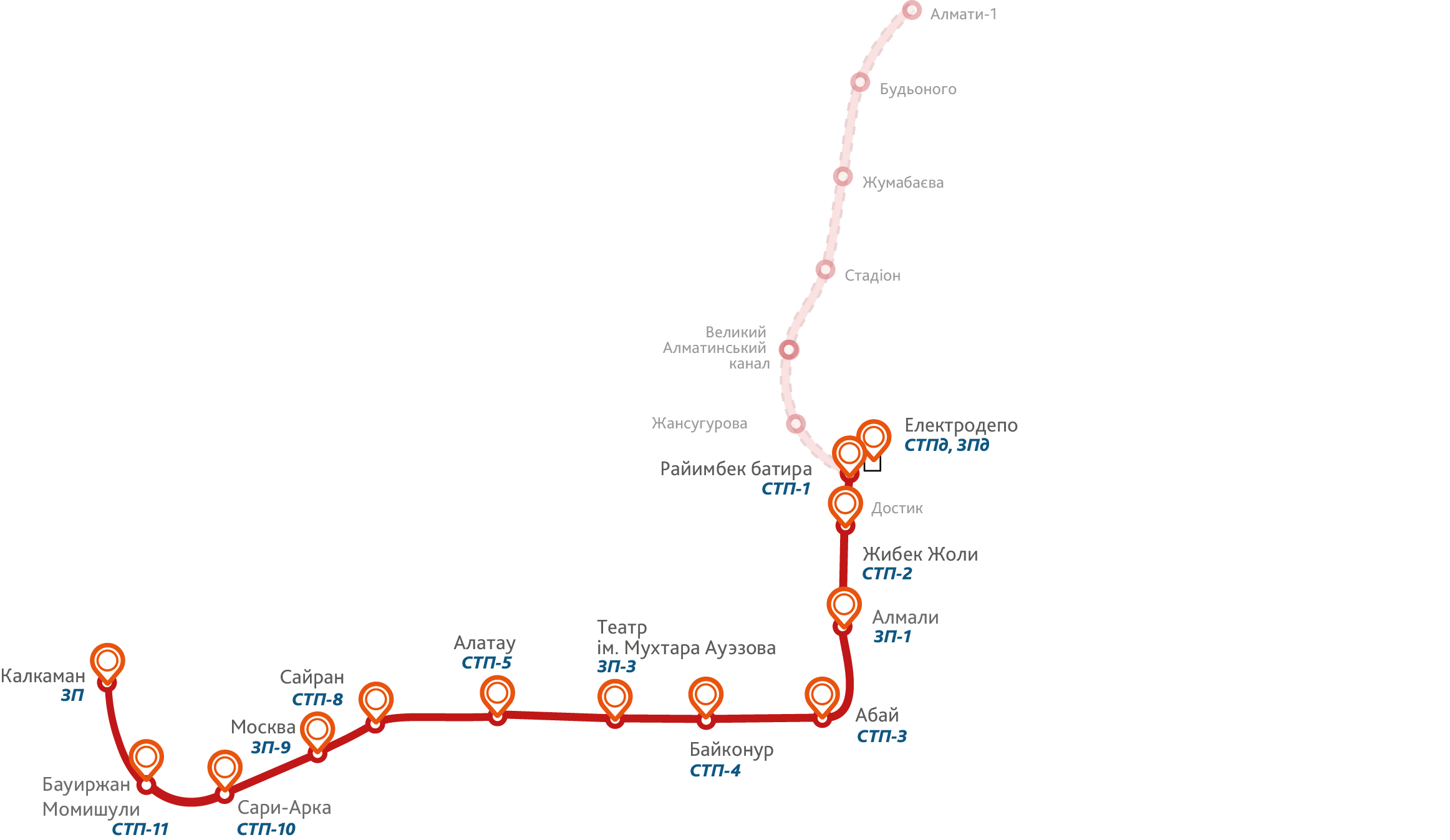 18 квітня 2015 року введений в дію перший пусковий комплекс другої черги першої лінії метрополітену, до якої увійшли 2 станції. Разом, в експлуатації знаходяться вже 9 станцій. Компанія «Плутон» є Генеральним підрядником з постачання, монтажу та пусконалагодження всіх тягових та понижувальних підстанцій Першої лінії метрополітену міста Алмати. В цілому, компанія «Плутон» поставила 7 суміщених тягово-понижувальних підстанцій (СТП) та 4 понижувальні підстанції (ПП). Встановлене на підстанціях обладнання виробництва компанії «Плутон» відповідає міжнародним стандартам, забезпечує надійність електропостачання, безпеку та зручність обслуговування. Вбудовані сучасні системи управління забезпечують моніторинг параметрів підстанцій, діагностування, захист, фіксування всіх перехідних процесів, аналіз та реалізацію алгоритмів управління.